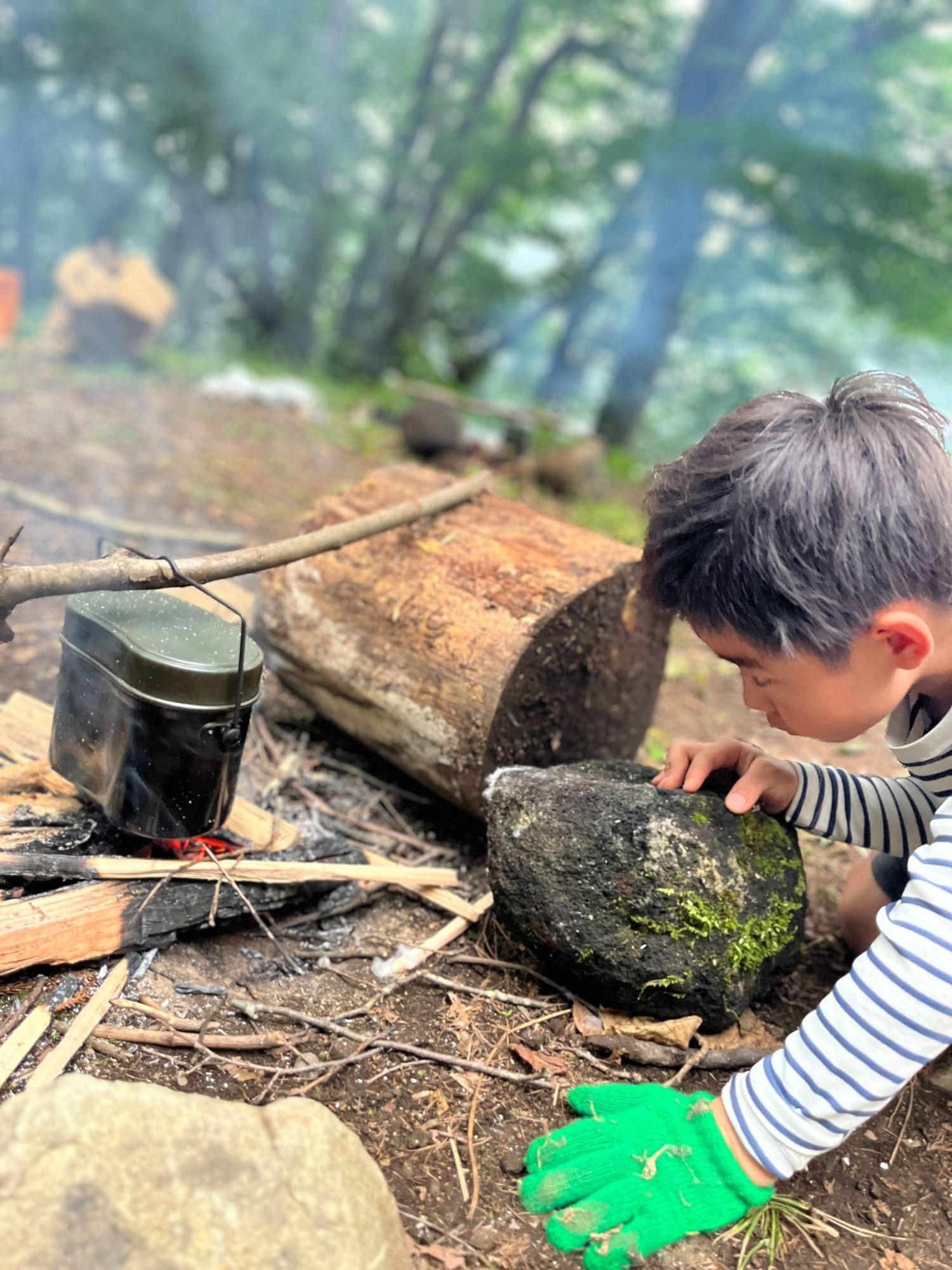 学びの核は、ブッシュクラフトキャンプと、自然と対話する意味を込めて設ける「静かな時間」にあります。火を熾し、寝床を整え、食をつくり、道具を工夫する——自然の中では「自分で決め、自分で動く」ことが日常になります。そこに静かな時間を重ねることで、出来事の結果だけに振り回されず、自分の感情や状態に気づき、整え直す力が育ちます。これらの積み重ねが、やがて自立と、内側から立ち上がる静かな自信(自己効力感)へとつながっていきます。