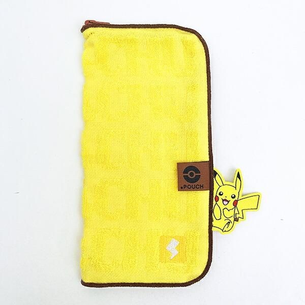 ピカチュウの名前がぷっくりと織られたタオル生地には、でんきタイプの雷マークが刺繍されています。ピカチュウは世代問わず愛されているキャラクターなので、ちょっとしたプレゼントとして選ぶならこのピカチュウモチーフのどっとポーチが特におすすめです。