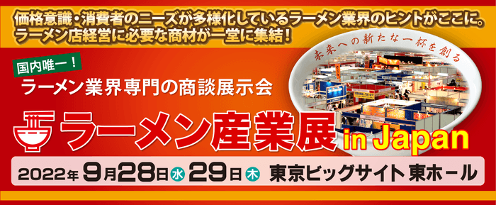 国内唯一!ラーメン業界専門の商談展示会 “ラーメン産業展 in Japan”を東京ビッグサイトで開催いたします。