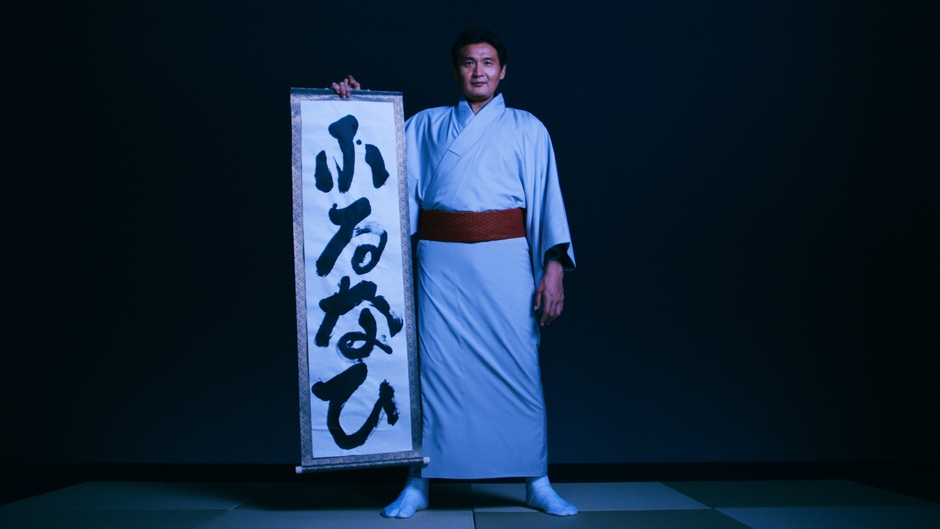 黒と白の単色を基調としたシンプルで上質な空間に佇む着物姿の貴乃花さんが、書道パフォーマンスを豪快に披露します。「ふるなび、ふるなび、ふるなび・・・」と唱えながら筆を動かす貴乃花さんですが、緊張のあまり、「ふるなぴ」や「ふるなひ」と間違えてしまい、その姿にスタッフから突っ込みが!