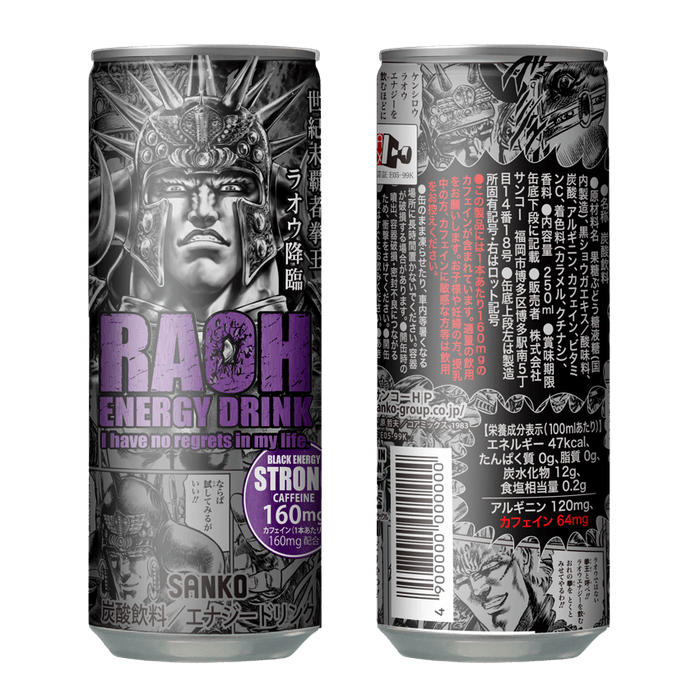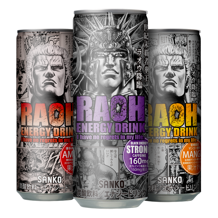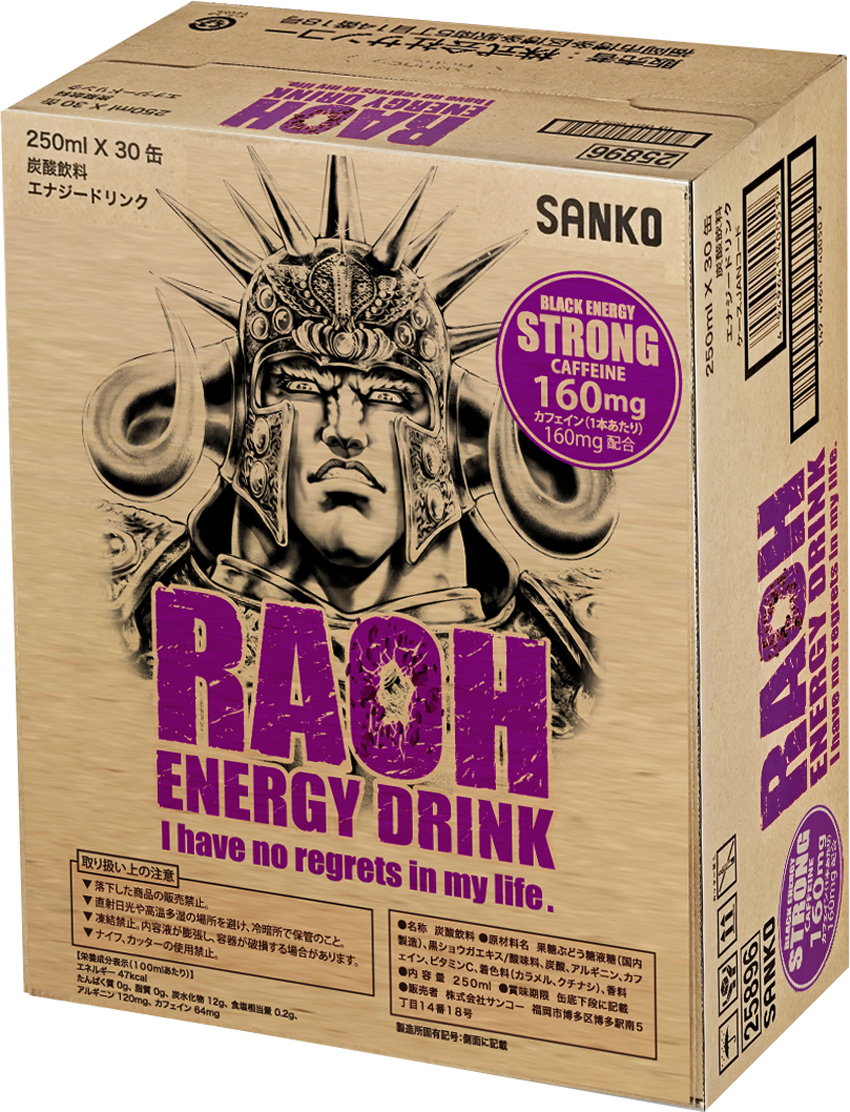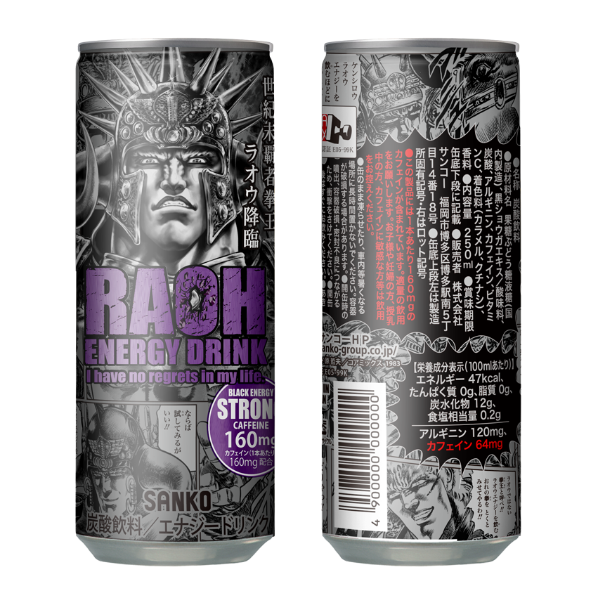 福岡の飲料メーカー、株式会社サンコーが「北斗の拳」とコラボしたエナジードリンク「ラオウエナジー」の第3弾「ラオウエナジー/ブラックエナジー」を発売します。