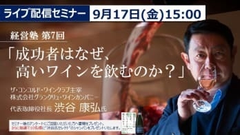 経営塾 第7回「成功者はなぜ、高いワインを飲むのか?」 オンラインセミナーが9月17日(金)に開催 グランクリュ・ワインカンパニー代表 渋谷 康弘が講演