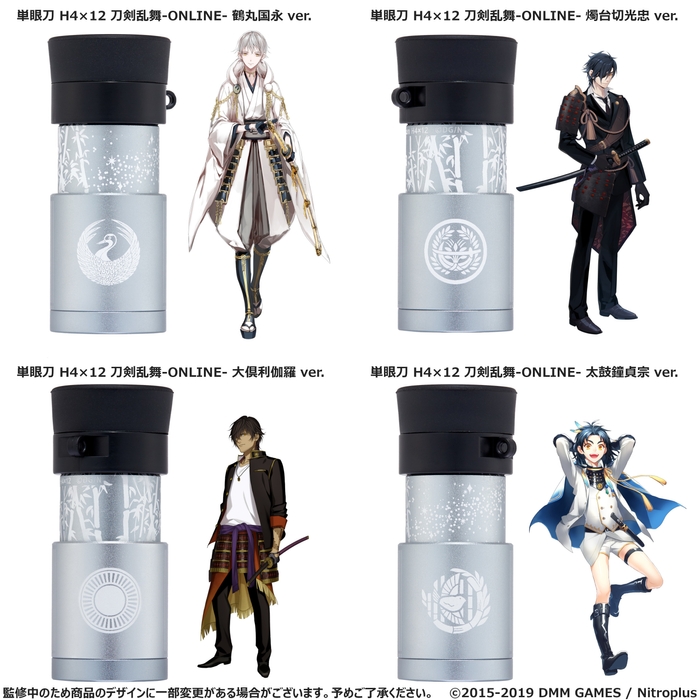 株式会社ビクセン(本社:埼玉県所沢市、代表取締役:新妻和重)は、本体デザインをフルカスタマイズできる単眼刀と、人気PCブラウザ&スマホアプリゲーム「刀剣乱舞-ONLINE-」がコラボレーションした、『単眼刀H4×12 刀剣乱舞-ONLINE-』第4弾の受注販売を決定しました。第4弾では刀剣男士「鶴丸国永」「燭台切光忠」「大倶利伽羅」「太鼓鐘貞宗」の4振りのモデルが登場。2019年7月30日(火)12:00から、ビクセンオンラインストアで受注を開始します。