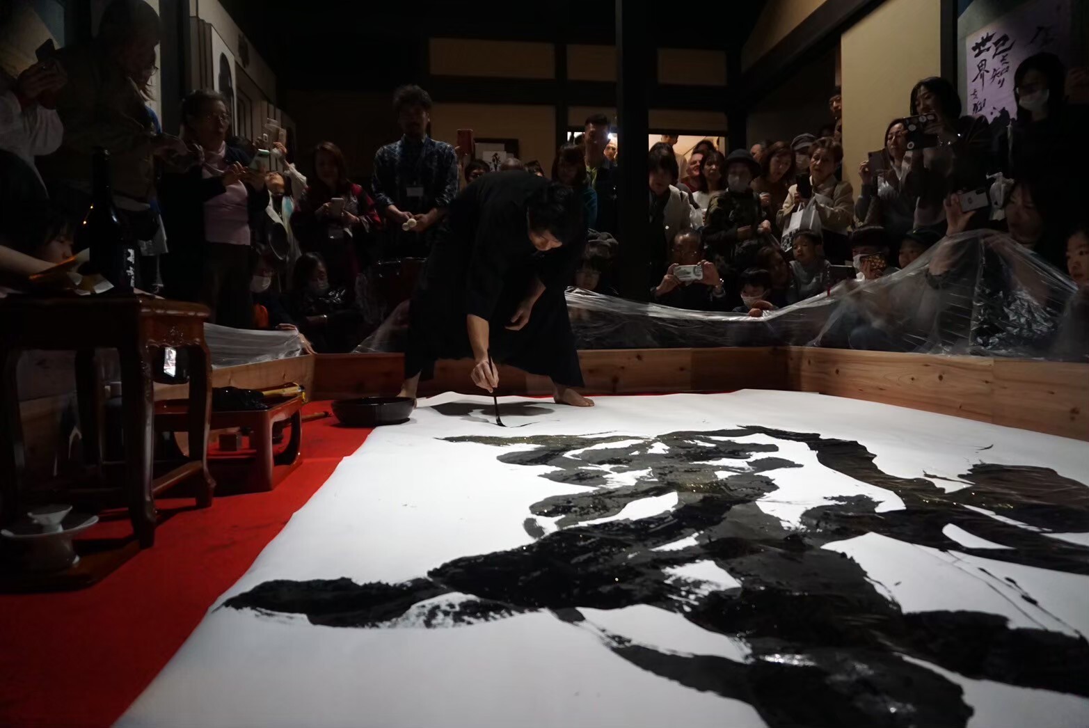 会期中は席上揮毫を実施。筆が走る音、墨の匂い、会場の静寂。