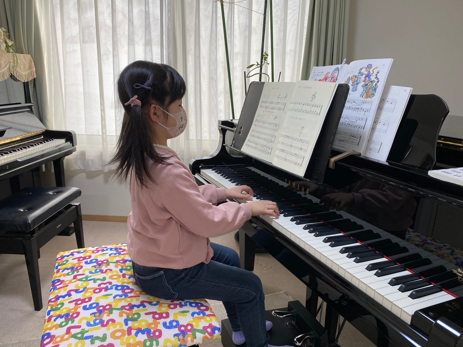 幼児さんや小学校低学年等の体の小さい生徒さんがグランドピアノを弾く時、楽譜の位置が高く常に上を向いた状態で疲れやすい姿勢になってしまいます。脱力して楽にきれいな音を出すためには楽な姿勢でピアノを弾くことが必要です。