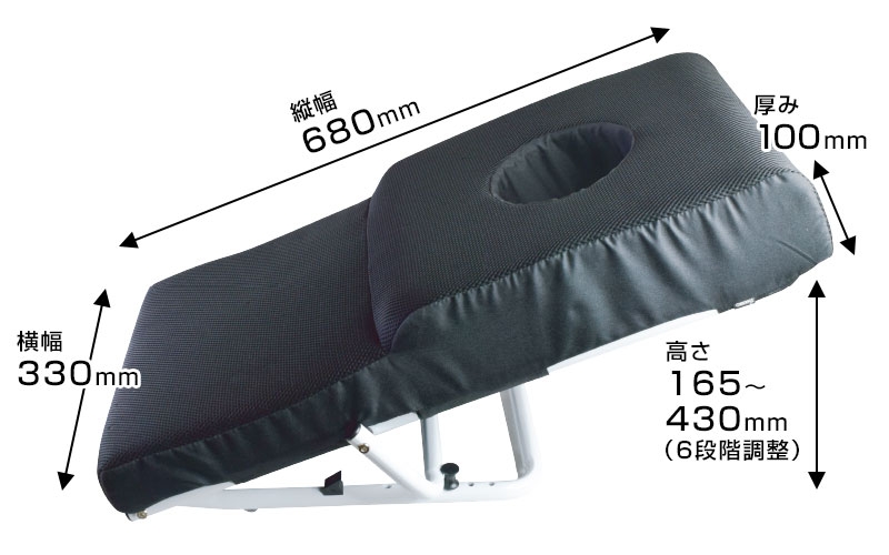 サイズは横幅330×縦幅680×高さ165~430mm。ピンの位置を変えることで、高さ(角度)は6段階の調整が可能。お好みの快適な角度でお使いいただけます。