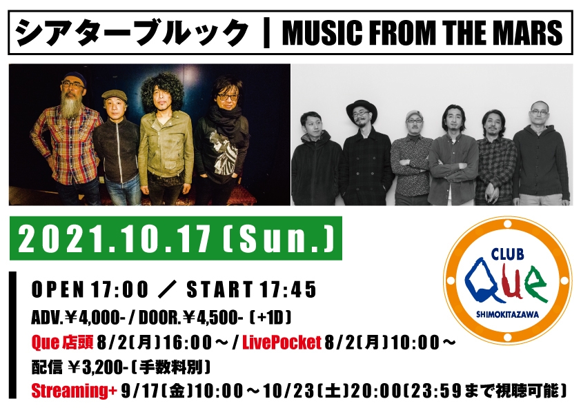 「シアターブルック×MUSIC FROM THE MARS」2バンドイベント 27周年を迎える老舗ライブハウス「下北沢CLUB Que」にて 10月17日(日)有観客&配信で実現!