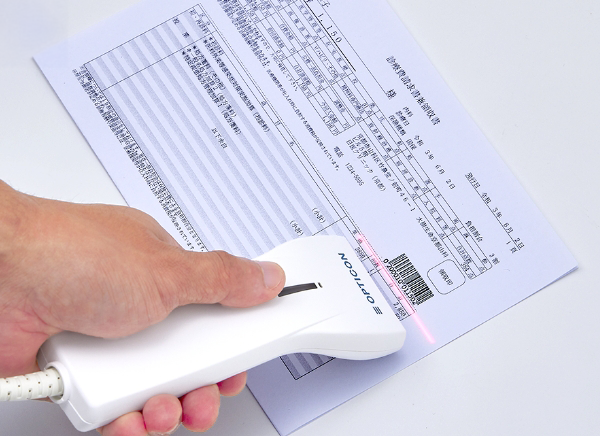 レセコンから発行される領収書や処方箋などのバーコードを、ハンドスキャナーで読み取る。すると、レジ画面に請求金額が瞬時に自動入力されます。たったこれだけで、入力作業そのものをなくすことができます。