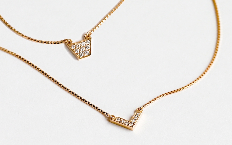 定番の一粒ダイヤネックレスは70種以上のデザインを取り揃えており、顕微鏡を使い小さなダイヤモンドを爪で留める技術「マイクロ・セッティング」を用いたパヴェの商品も豊富である。