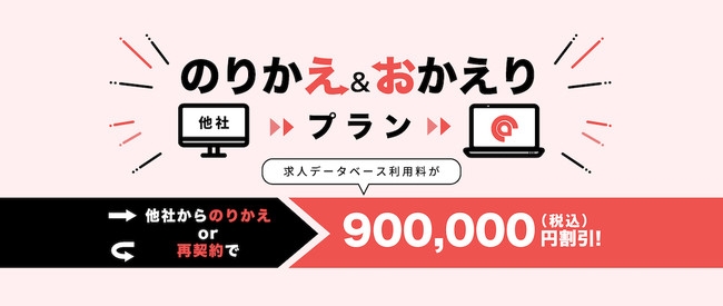 この度、より多くの人材紹介会社の皆様にご利用いただくことを目的に、携帯電話業界では主流となりつつある「乗り換えキャッシュバック」を実施いたします。このようなプランを人材業界で本格的に取り入れている企業は現時点で稀有ですが、当社はより多くの人材紹介会社に満足いただくために、プラン導入を決定しました。