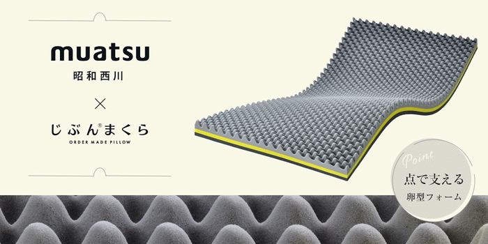 卵を並べたような凸凹のあるウレタンフォームを中身に使用して、身体を点で支えて自然な寝姿勢を保つ「 muatsu(ムアツ)」。昭和西川とコラボして、オリジナルデザインで新登場!
