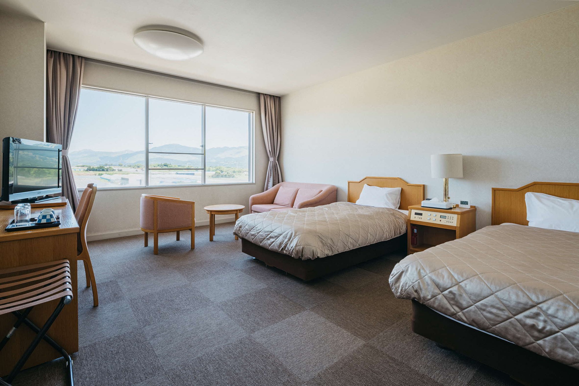 阿蘇の自然に囲まれた癒しの宿「阿蘇熊本空港ホテルエミナース」で、心安らぐひとときを。天然温泉と地元食材を活かした料理を楽しめる、阿蘇外輪山が見渡せるツインルームペア(1泊2食付)宿泊券をプレゼント!