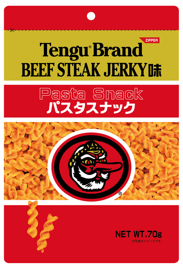 テング ビーフステーキジャーキーが カリカリ食感のパスタスナックに! 「ビーフステーキジャーキー味パスタスナック」 2022年8月新発売