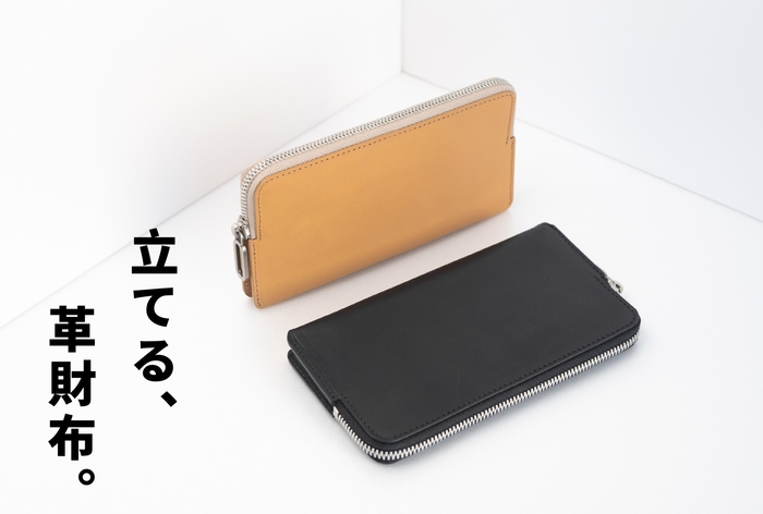 机に立てて置ける革財布「wallet NO'01」発売 - 置き忘れ防止と大容量を両立