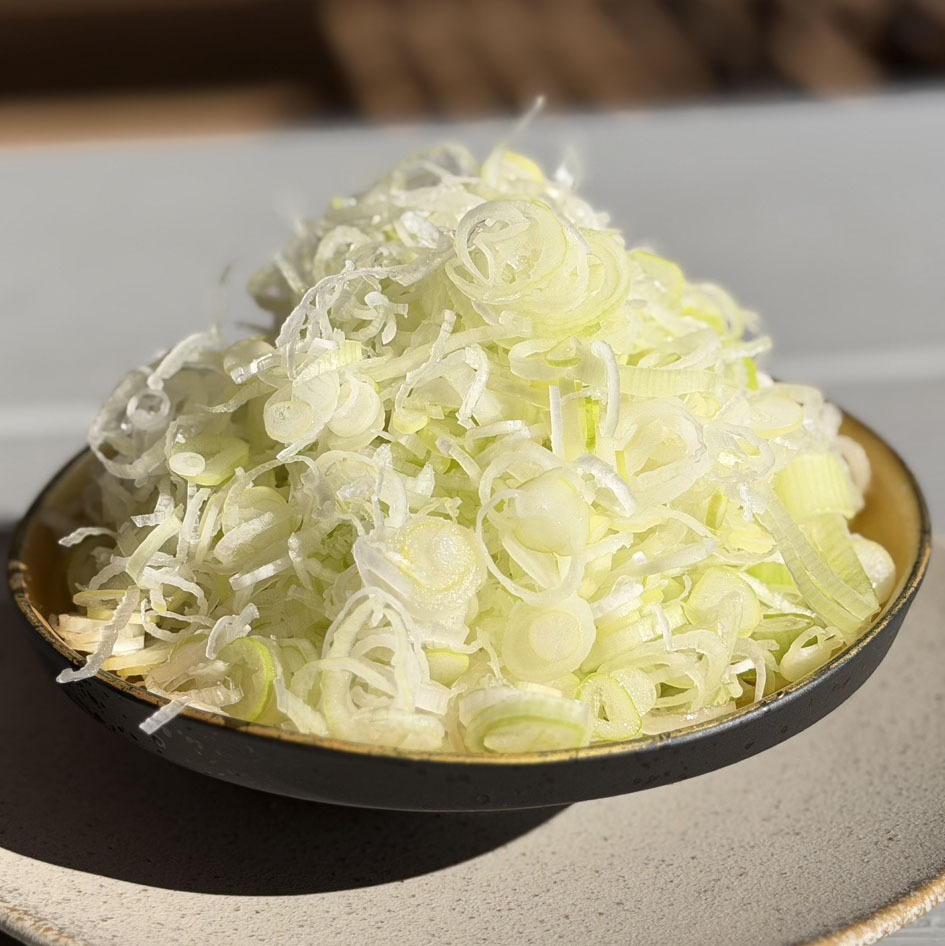 ご注文いただいたすべての食堂メニューに、ねぎをたっぷりとかけて召し上がれ。特製“ねぎまみれ”の完成です。
