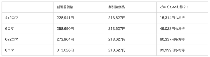 ※通常はコマ数に応じて料金が上がりますが、本キャンペーンでは最大8コマまで追加しても「4コマの料金」でご利用いただけます。