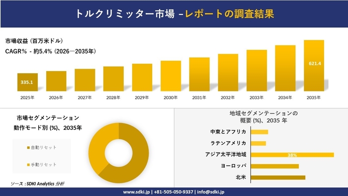 提出日 (2025年12月29)、SDKI Analytics(本社:渋谷区、東京都)は、2026年と2035年の予測期間を対象とした「トルクリミッター市場」に関する調査を実施しました。