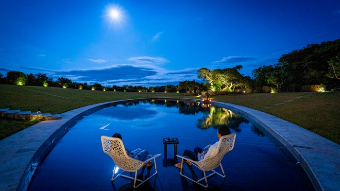 【星のや竹富島】大自然×夜のプールでお月見!三線やお酒を一緒に楽しむ 「美ら月(ちゅらつき)ぬ夜会(ゆかい)」実施|期間:2021年9月20~22日、10月20~22日