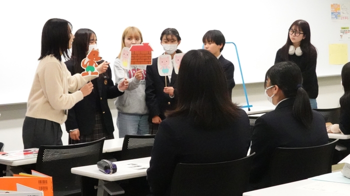 幼児保育学科:「乳幼児が楽しめる絵本やパネルシアターなどの見せ方や演じ方について学ぼう」