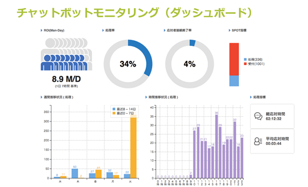 LINEとWebをインターフェイスにして、M-Talk とAIチャットボットを連携、お客様からの問い合わせに、まずはAIチャットボット(みことちゃん)が応答し、AIチャットボットが解決しないものを有人に切り替えるという運用をスタートしました。M-TalkをフロントにしてAIを連携させることで、チャットボットのリアルタイムなモニタリングが可能で、有人に引き継ぐ際にも、チャットボットとお客様の対応履歴も引き継ぐことができます。これにより、お客様に煩わしさを感じさせない、シームレスな切り替えによる対応が可能になります。