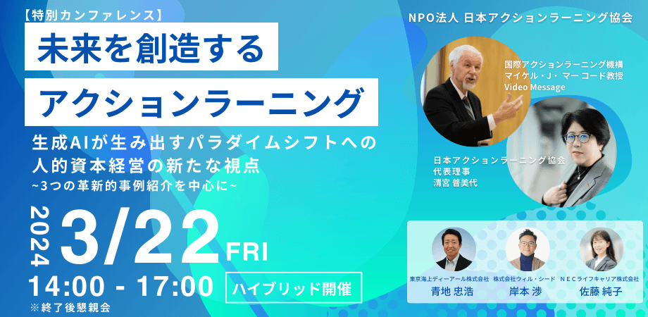 <3月22日(金) 特別カンファレンス開催> 未来を創造するアクションラーニング2024 生成AIが生み出すパラダイムシフトへの人的資本経営の新たな視点
