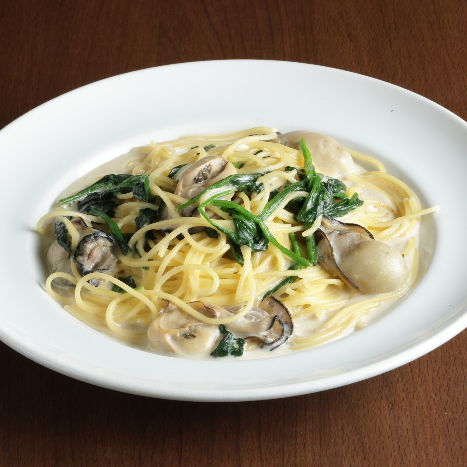 広島県産牡蠣とほうれん草のクリームパスタ