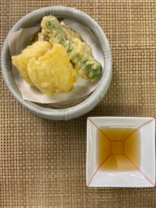 ◎鱧の天ぷら:サクサクの衣に包まれた鱧の天ぷらは、香ばしく、旨味豊かな逸品です。