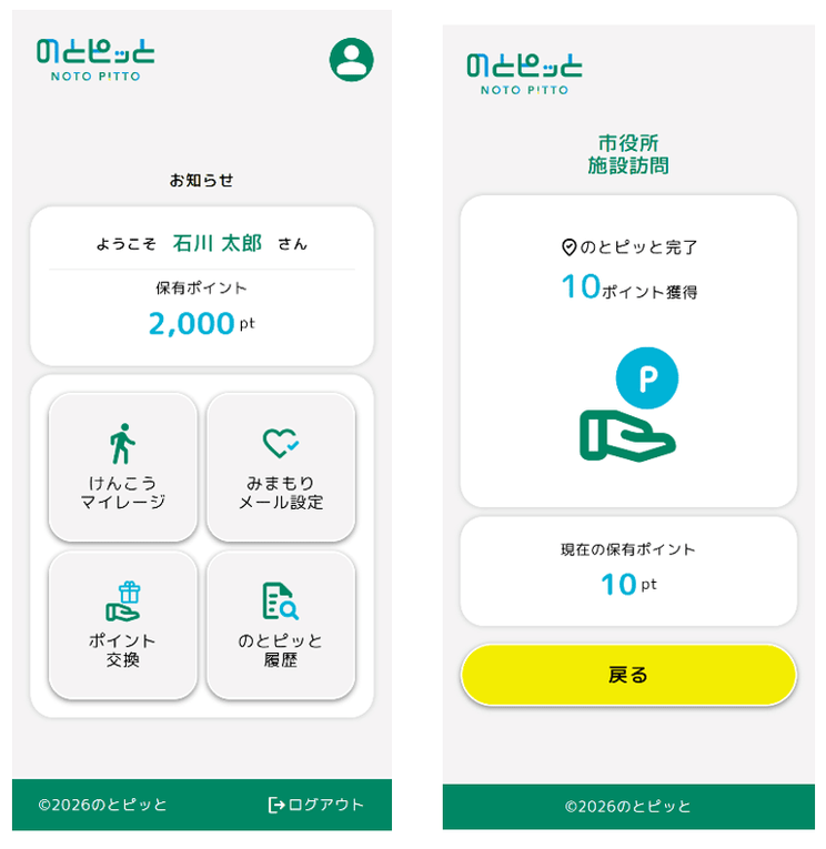 能登6市町の公共施設や民間の店舗などに700カ所以上の「のとピッとスポット」を設置しQRコードの読み込みでポイントを付与します。