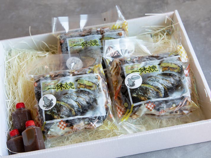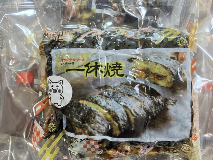 関西風のお好み焼を四角の形に焼いた後、焼海苔を貼り付けて内側にソースを塗り込み、これを折りたたんでカットした特徴的な形状の「お好み焼一休」オリジナルメニューである「一休焼」です。海苔の風味がソースの味わいを引き立て、当店の人気メニューとなっており、冷めても美味しいと評判を得ています。冷凍販売により、従来は店舗周辺の方に限定されていた一休焼をより多くの方にお届けできるようになりました。このたび、冷凍一休焼のサイズをハーフサイズに変更し、食べやすくするとともに、複数の味わいからお選びいただけるようにバリエーションを取り揃えました。