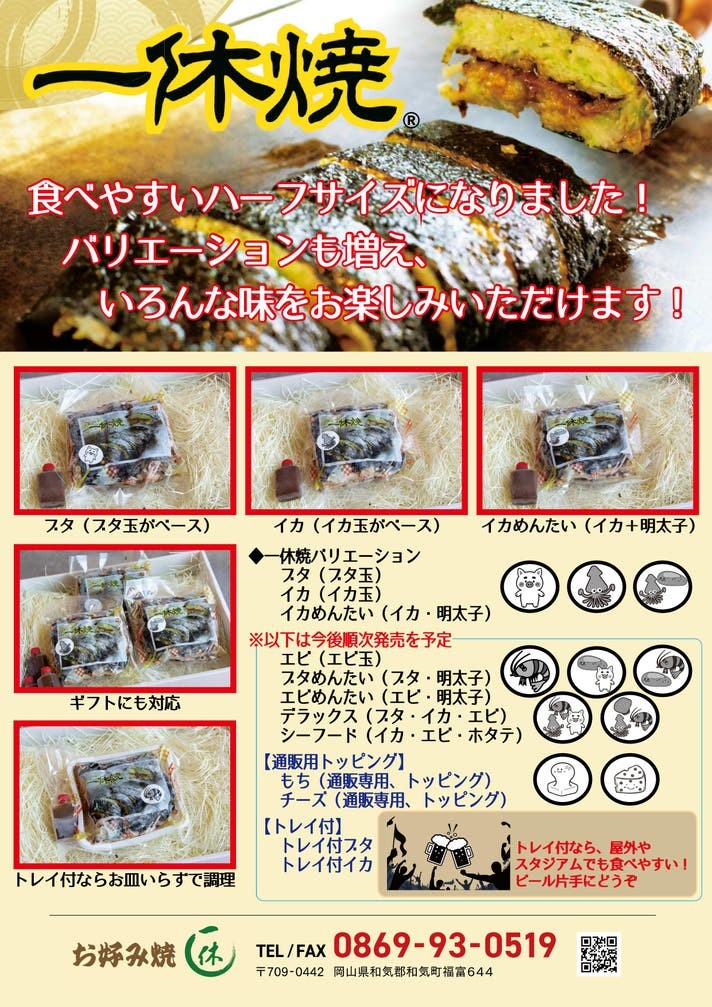 株式会社ティムコ(本社:岡山県和気郡和気町、代表:田原匠)は、新たにハーフサイズの冷凍一休焼を複数の具材バリエーションで販売開始します。焼海苔をアクセントに使用した独自のお好み焼で、食べやすさと味わいを兼ね備えた商品です。