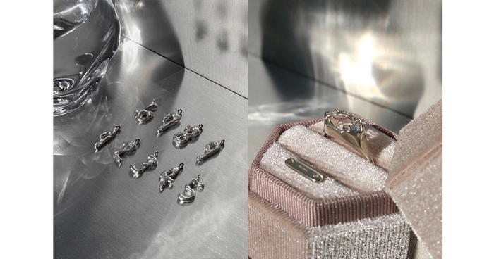 柔らかなニュアンスを残した有機的なラインとテクスチャーを施し、0.1mm単位で設計された繊細な仕上がりが特徴。