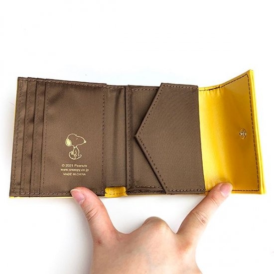 明るいイエローカラーがキュートな、スヌーピーのコンパクト財布です。スヌーピー以外にもオラフやアンディたちブラザーズの総柄になっていて、とってもシンプル♪
