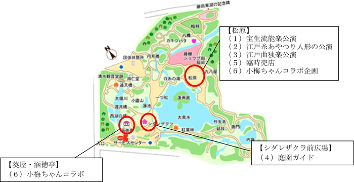 園内各所・葵屋(売店)・涵徳亭(レストラン)