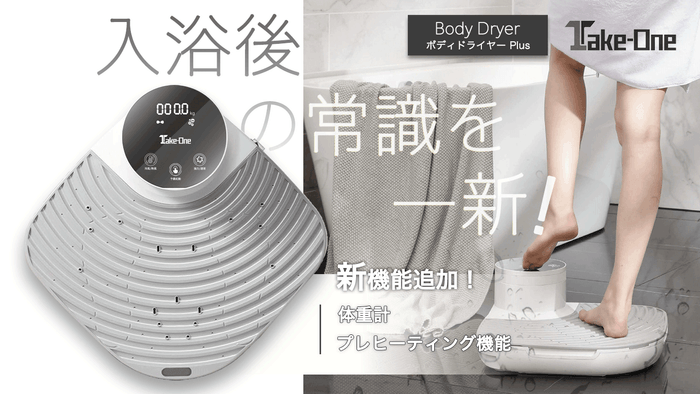 【新商品】メディア出演多数!今話題の未来家電「ボディドライヤー」がさらに進化して堂々登場!「Take-One BodyDryerPlus」がMakuakeにて先行販売開始 | NEWSCAST