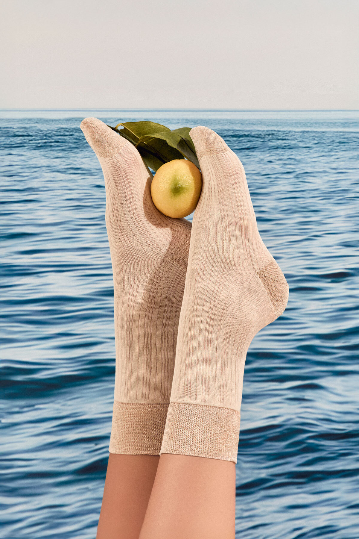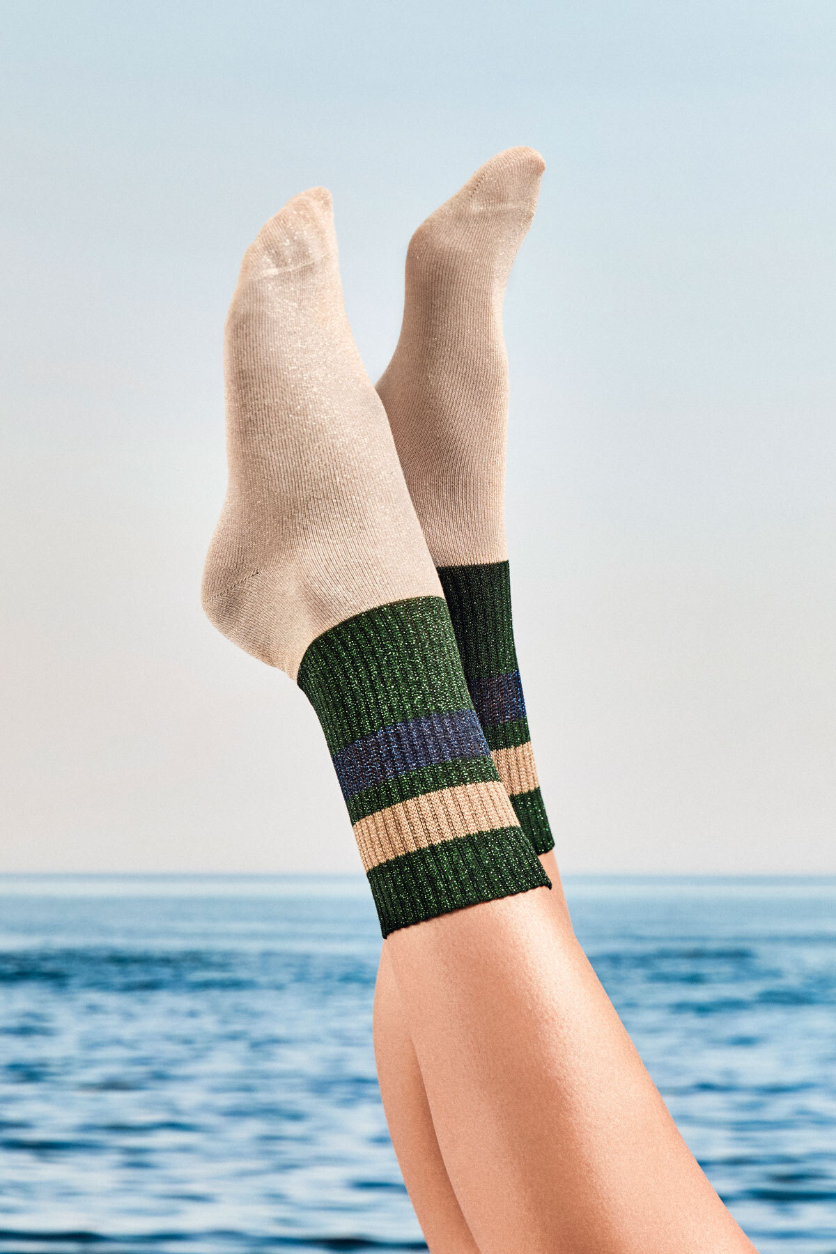 TOLEDO(トレド)は、コットンをベースにラメ糸を織り交ぜたニット調のショート丈ソックスで、ほどよい透け感と爽やかな印象が特徴です。軽やかな素材感が春夏のスタイリングに自然に溶け込みます。