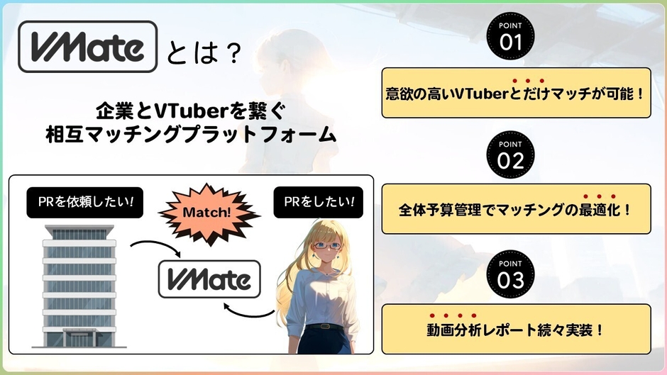 VTuberと企業を直接マッチング「VMate」プレリリース “VTuberマーケティング”をデータ分析で最適化!