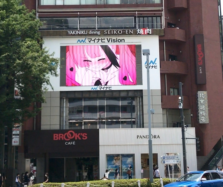 差し入れ金額を使用して、Eve「白銀」のMVを手掛けたパンケーキ株式会社の全面協力によって、作者描きおろしイラストをもとに『踊るリスポーン』のキャラクターたちが大集合した15秒映像を制作し、6月20日(土)~6月28日(日)にかけて原宿表参道ビジョンでの放映を実現しました。