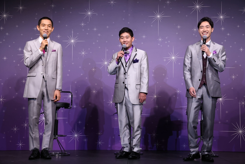 発表会の終盤にはスペシャルゲストとしてミッキーとミニーが、“ディズニー100”の特別なプラチナ衣装で登場。100周年を記念するレアな衣装ということもあり、後藤さんは「えー!すごい!僕、ミッキー大好きで」と大興奮。さらにここで四千頭身の皆さんの衣装が、ミッキーとミニーのプラチナ衣装をイメージした衣装だったことにも触れて、都築さんは「100周年の衣装に合わせてもらいました」とコメントしました。