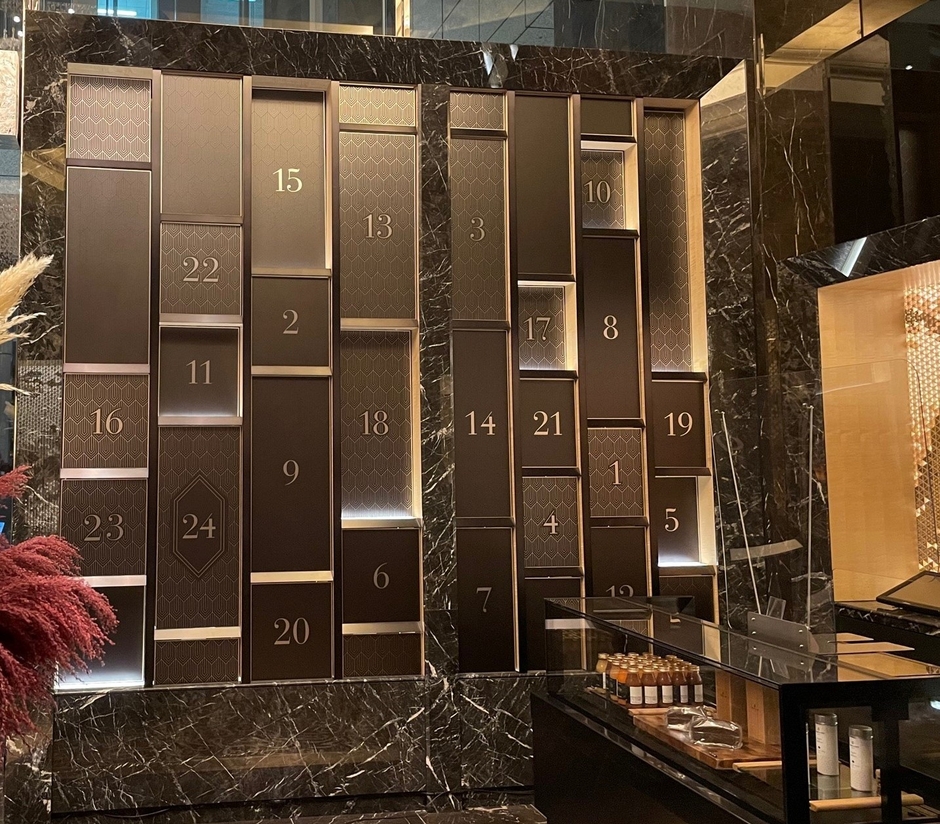 このアドベントカレンダーでは、12月1日(火)より毎日ホテルスタッフがサプライズギフトをその日の日付の場所に展示し、クリスマスまでのカウントダウンを行って参ります。毎日異なるサプライズギフトは、ホテルオリジナルグッズやモルトンブラウンの人気商品サンプルなどをご用意し、先着30名様のお客様にプレゼントいたします。プレゼント配布の開始時間はその日のお楽しみのため、配布開始のタイミングに居合わせた幸運なお客様がプレゼントを手にすることができます。