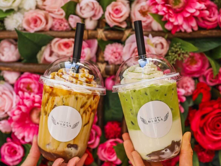 とろとろ食感のわらびもちをストローで飲む新食感のドリンクです。伝統的な和菓子のわらびもちに生クリームとドリンクを合わせ、洋風スイーツにアレンジしました。一番人気フレーバーは黒蜜です。