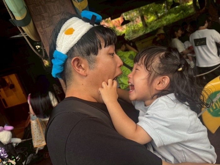 牧場に行って牛さんと一緒にとりました。そしたら牛さんもカメラ目線で娘とぱちり。生き物が大好きな娘の自然な笑顔が見えました。