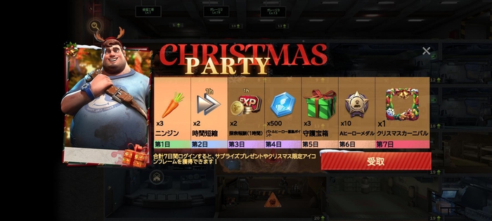 クリスマス限定ログインボーナス開催中は、ゲームにログインするだけで豪華な報酬が手に入ります。合計7日間ログインするだけで、クリスマス限定アイコンフレーム「クリスマスカーニバル」がもらえちゃう!