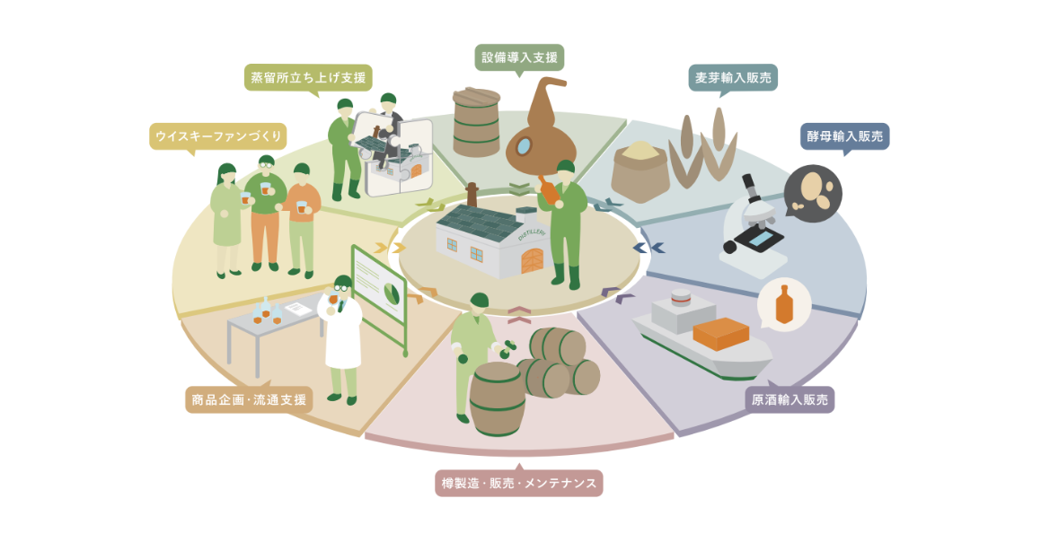 事業内容 :樽製造・販売・メンテナンス、麦芽輸入販売、酵母輸入販売、原酒輸入販売、設備導入支援、商品企画・流通支援、蒸留所立ち上げ支援、ウイスキーファンづくり