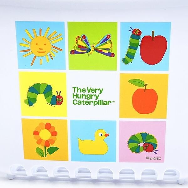 カラフルなあおむしたちのイラストがふんだんにあしらわれ、思わずお子さまの目を引くデザインです。