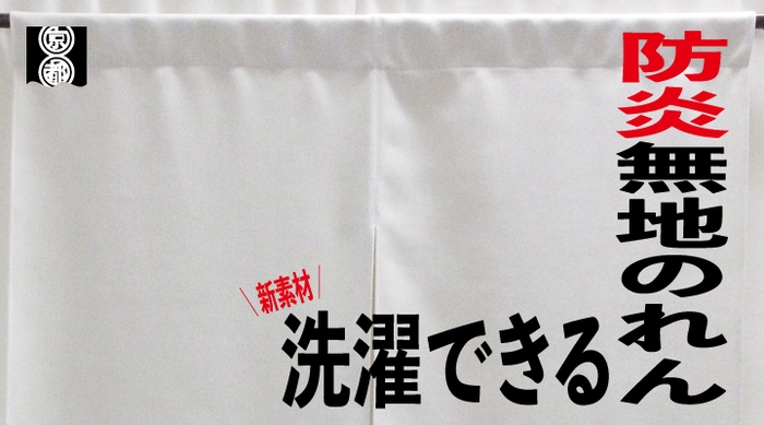 そこで公益財団法人日本防炎協会認定会社の京都のれん株式会社では洗濯後も再防炎が必要のない公益財団法人日本防炎協会認定の(イ)マークを取得した綿風に見える厚手特殊防炎ポリエステル暖簾のオーダーを開始しました。製作納期も通常の無地暖簾を作る7営業日としております。