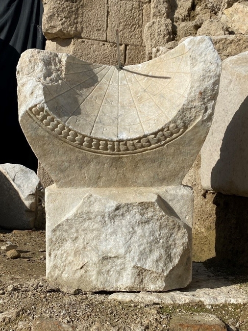 シムシェッキ教授によると、日時計がエジプトに最初に現れたのは、ファラオ・トトメス3世(紀元前1504~1450年)の時代と考えられています。「日時計は、アレキサンダー大王がバビロンを征服した後、紀元前331年に西洋に持ち込まれました。バビロニアの天文学者ベロッソス、内周面に目盛りのある球形の日時計を発明したと言われています。ラオディケアで発見された日時計はこれで3本目となり、過去に見つかった日時計の1つは部品が欠損しており、もう1つは無傷ですが、このたび発見された1年を通して太陽の位置を基準とした時間の区切りを碑文で表現している、これほど詳細な日時計は初めてのことです。このように時間を詳細に表示したこの日時計は、世界的にも非常に希少な標本の一つとなりました。ラオディケアは、識字率が高く、豊かで、芸術文化が発達した重要な都市でした。このようなヘレニズムの劇場でこの日時計を見つけられたことを大変嬉しく思っています。