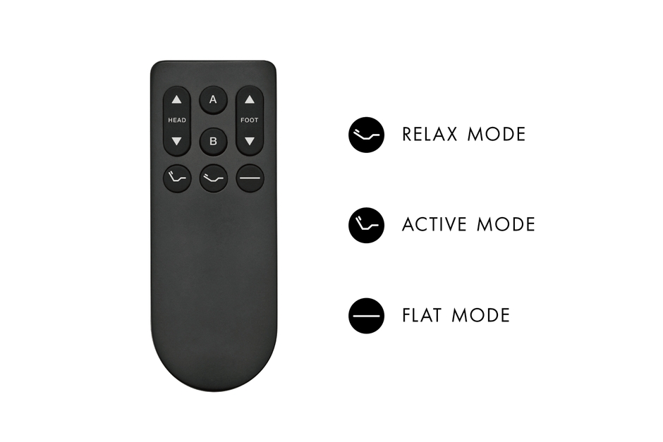 リモコンのボタン1つで、3つの基本モード「リラックス」「アクティブ」「フラット」へと簡単にスタイルチェンジします。背もたれの角度と脚の高さを自分好みに設定できる「カスタム登録」機能も搭載し、ワンタッチで自分にとって最高のポジションへと導きます。