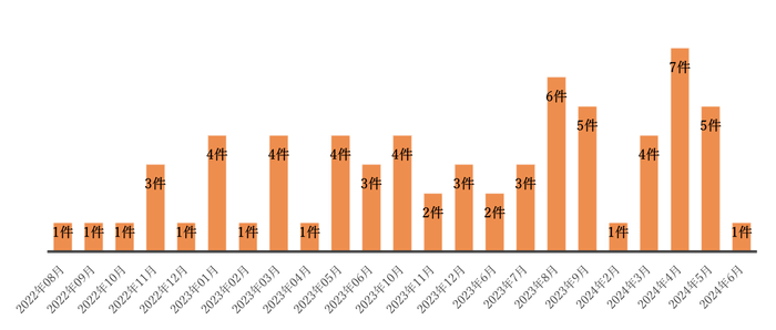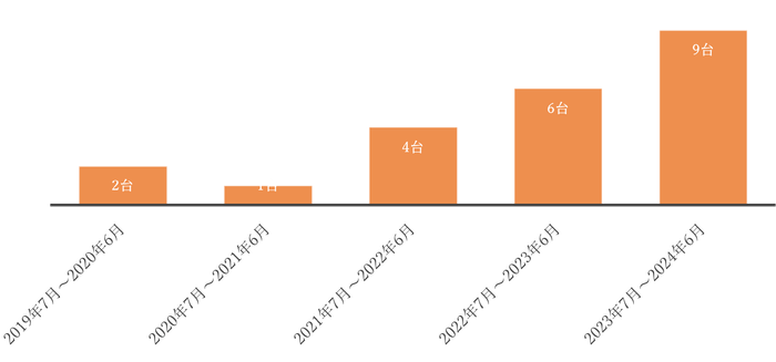 2022年度に白ナンバー義務化の影響を受け大幅に台数を伸ばし、翌年2023年度の実績は大幅に減少となりましたが、2024年に入りやや増加しました。