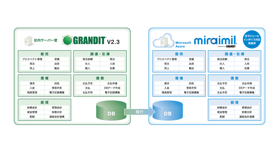 オンプレミス型ERPの「GRANDIT」を3か月でクラウド型の「GRANDIT miraimil」に完全移行。企業をとりまく外部環境の変化への柔軟な対応を実現します。