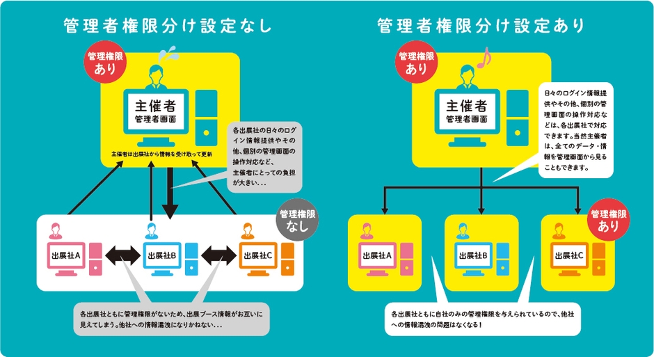 #1 合同展示会開催時、主催者の負担を大幅に削減する、「管理者権限分け設定」